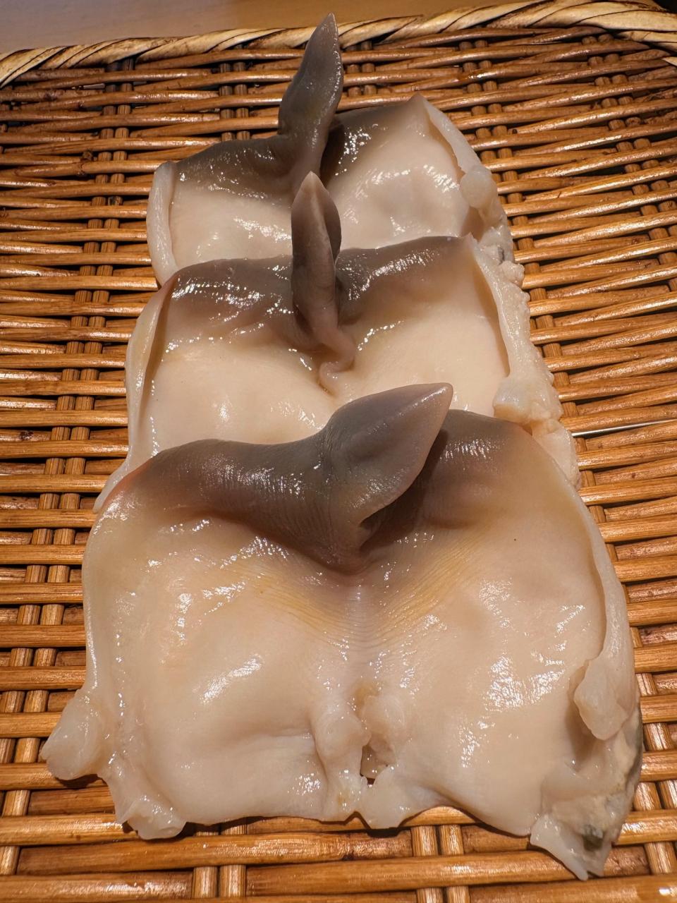 すし和楽では、北海道の「ホッキ貝」を買ってます。肉厚なので、食べた時に甘味も感じると思います。